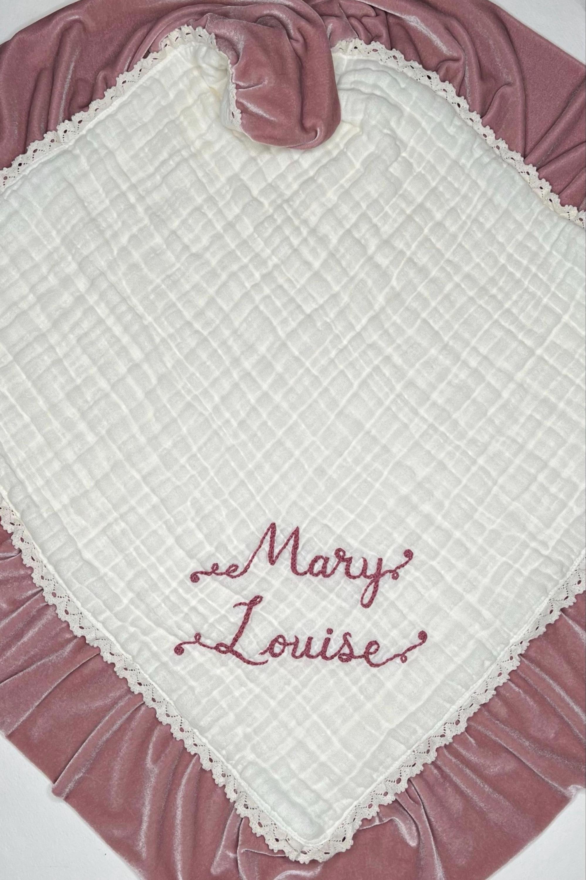 I am absolutely in love with the custom blanket Nathalie created for our unborn daughter. The quality is exquisite – six layers of the softest muslin, heavenly velvet, and stunning hand embroidery that feels so personal and special. The attention to detail is incredible, and the beautiful packaging made it feel like receiving a gift from a dear friend. Thank you, Nathalie, for crafting such a meaningful and luxurious piece that we’ll treasure forever. Baby Ruby Macaree is going to be wrapped in love ❤️